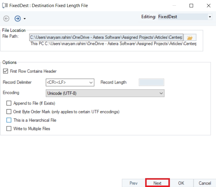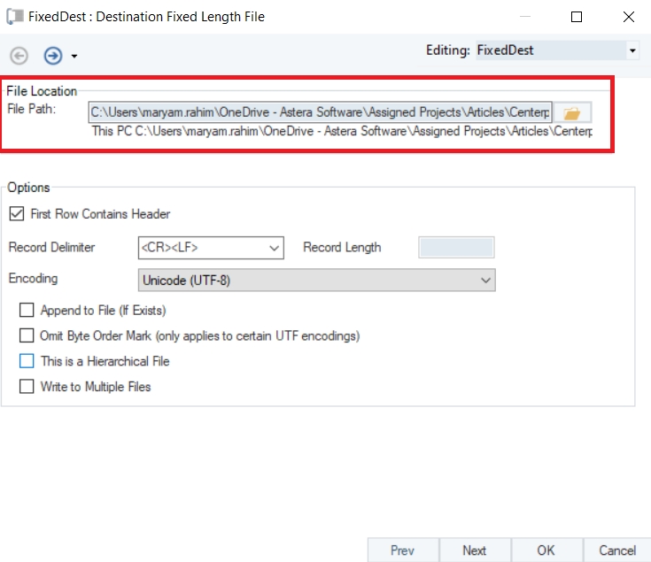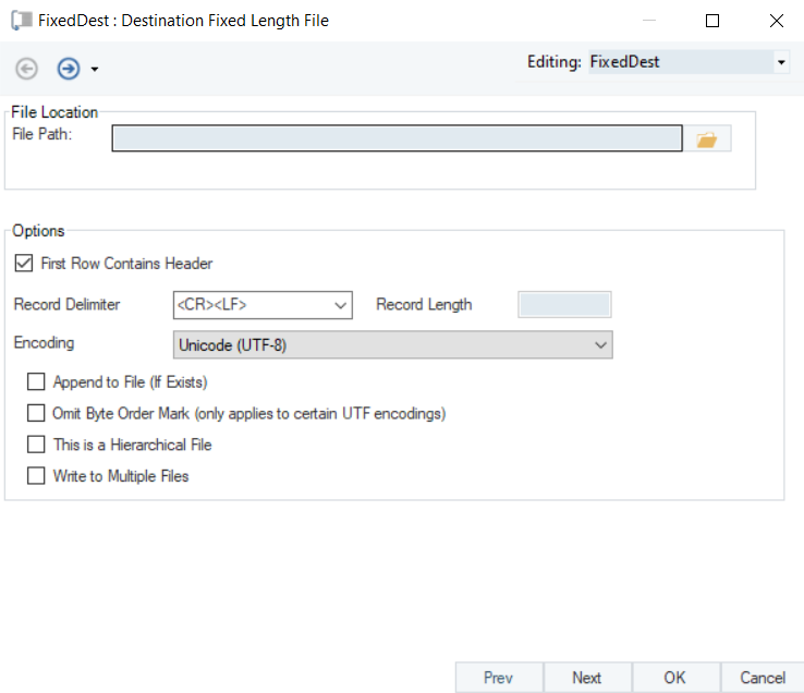 Astera’s Fixed Length File Destination provides the functionality to write data to a Fixed Length File.