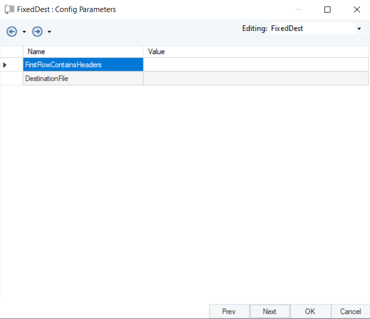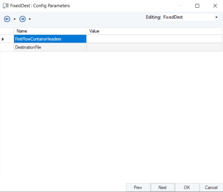 Once the object layout is configured, click Next. A new window will appear, Config Parameters, which allows to further configure and define parameters for the fixed length destination file.