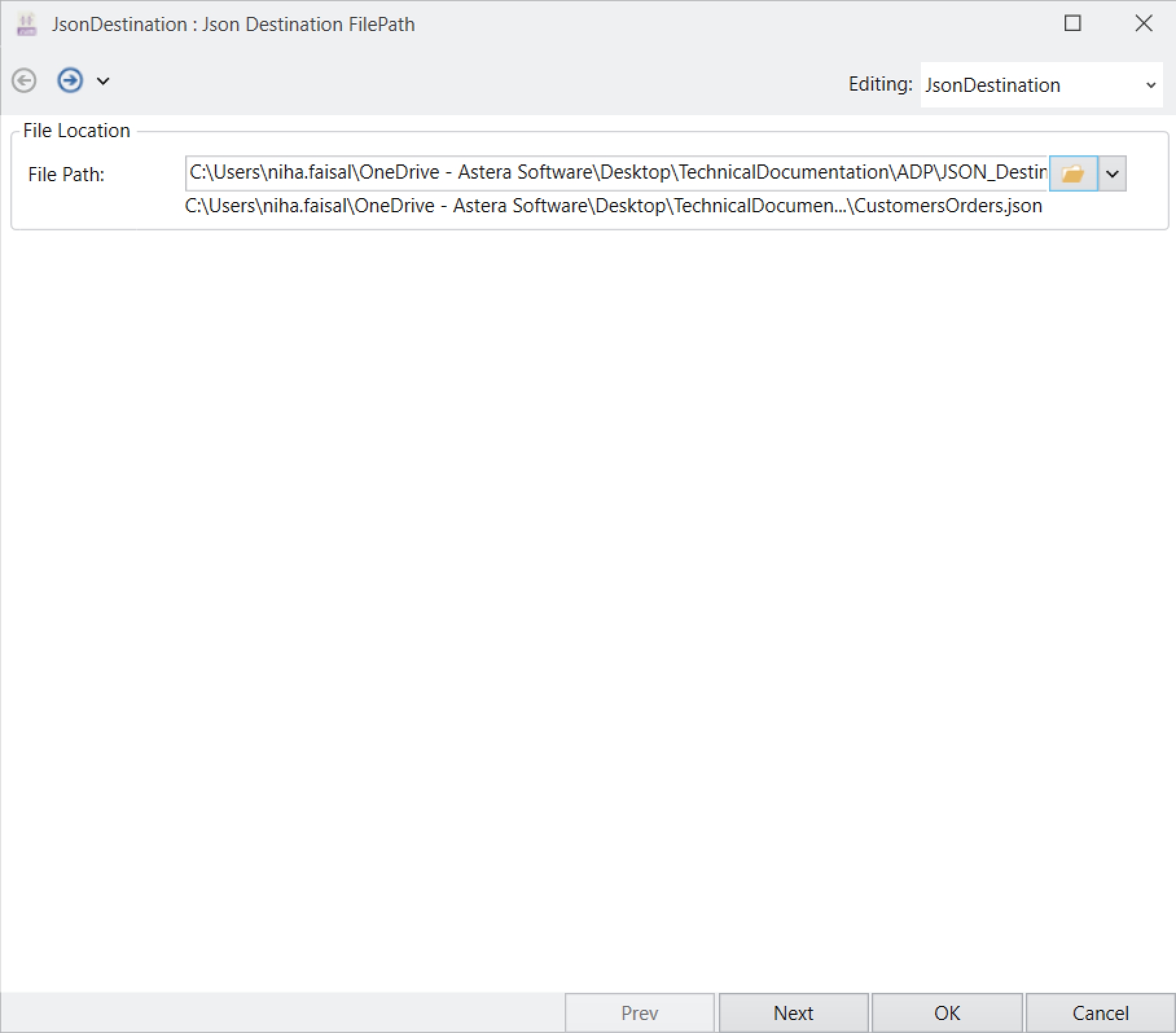 Astera’s JSON File Destination object provides the functionality to write data to a JSON file when the incoming data is in a hierarchical format.