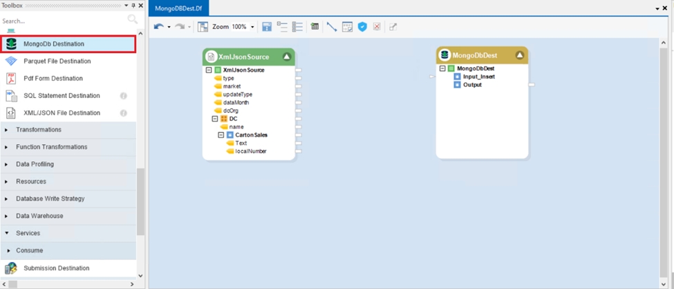 Using the MongoDB Destination object in Astera