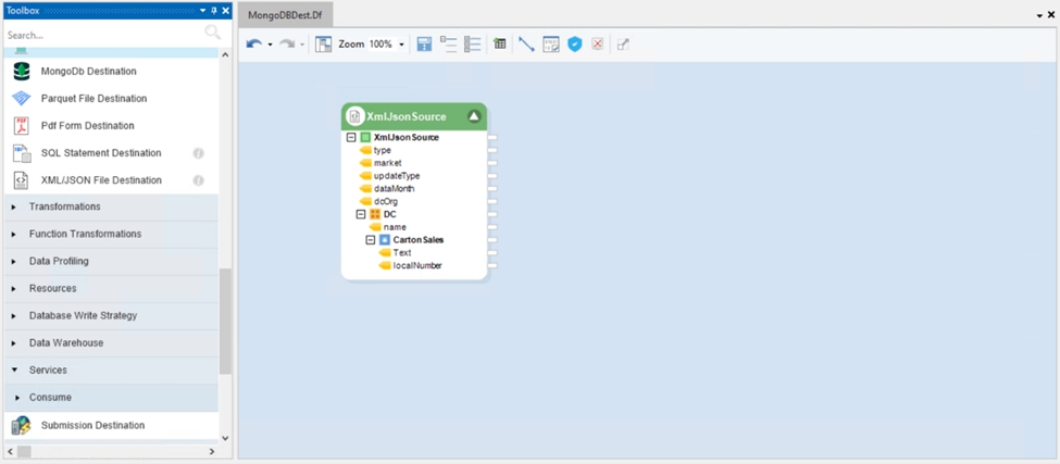 For our use case, we already have an XML/JSON Source object configured in a Dataflow.