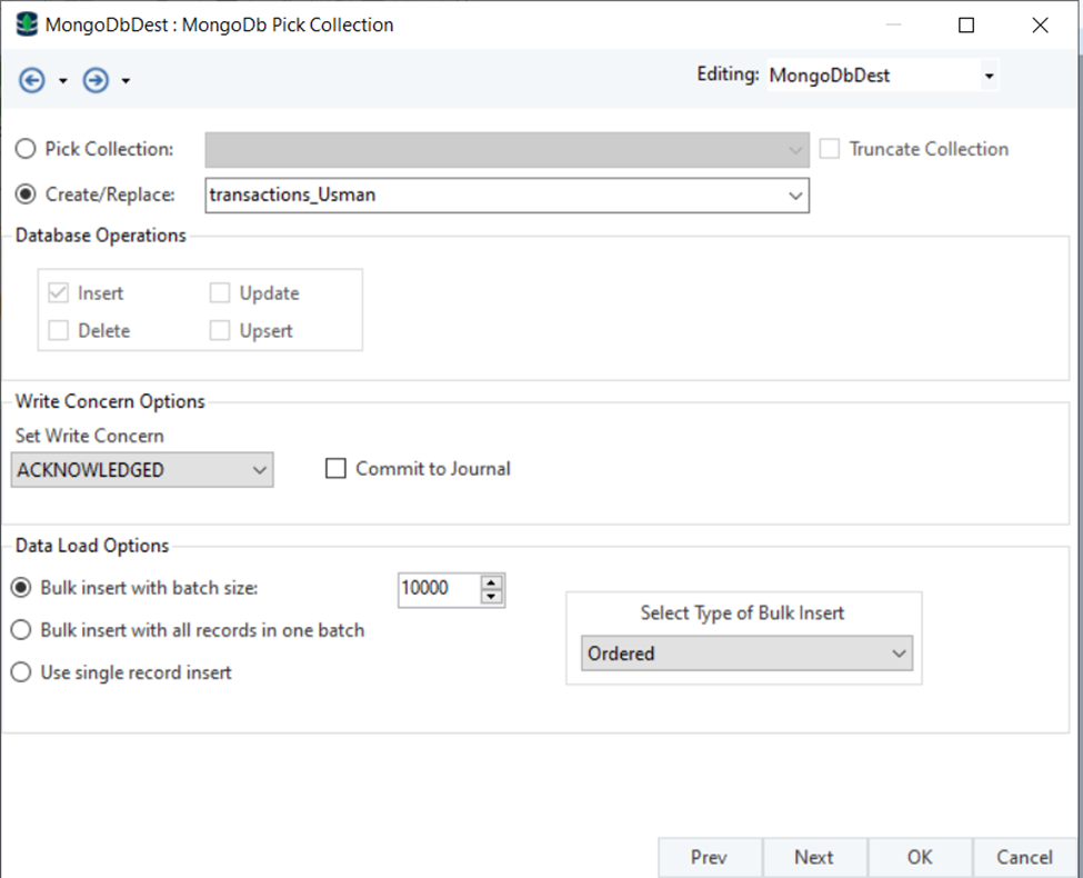 MongoDB is a document-oriented database in which one collection holds different documents. The MongoDB Destination object in Astera Data Stack, provides functionality to write data onto it. This component provides functionality to control how data should be written in collections.