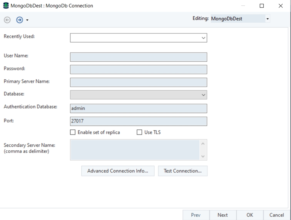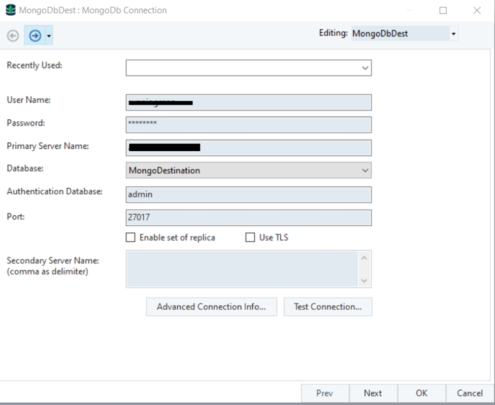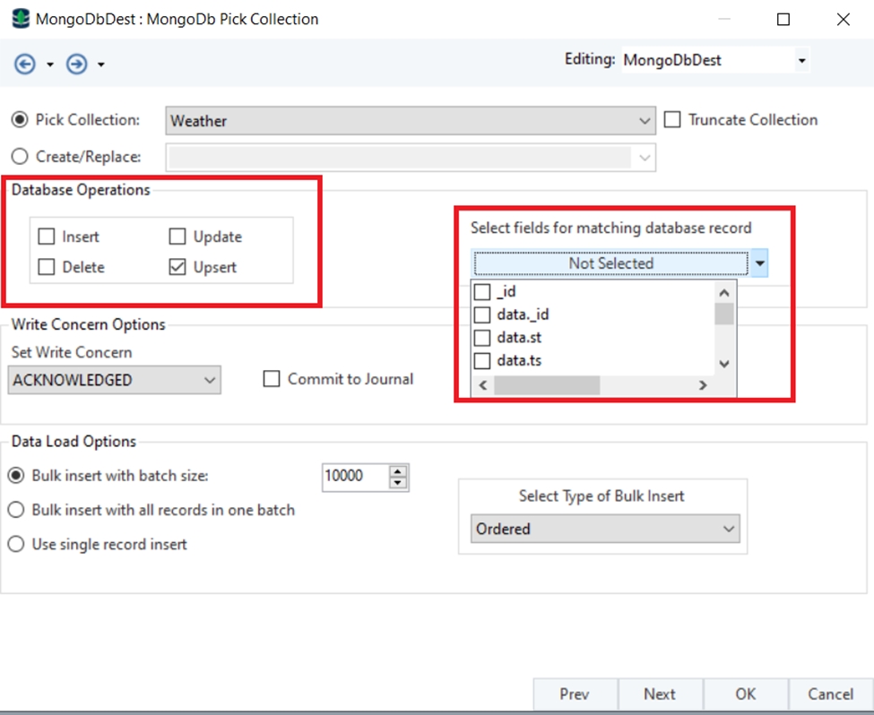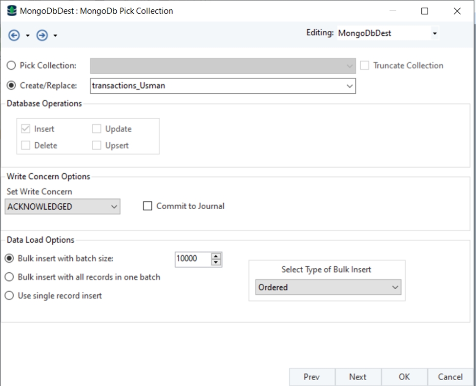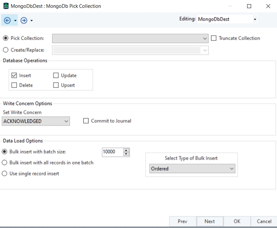 Click OK and the MongoDB Destination object will be configured.