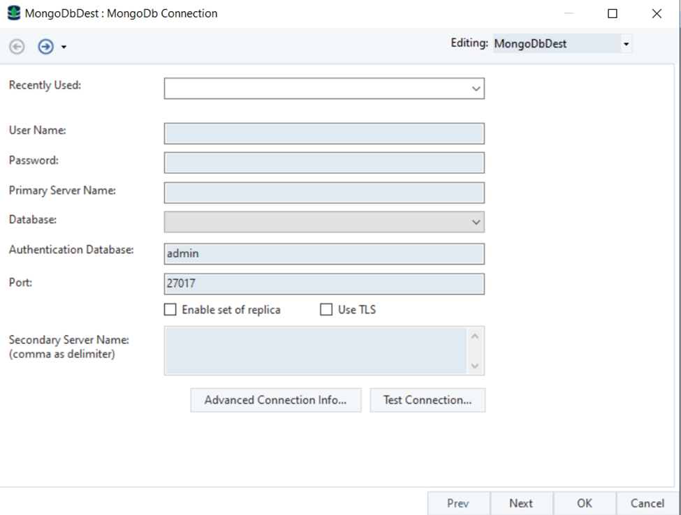 For our use case, we have input the credentials to use the MongoDB Destination for our local server.