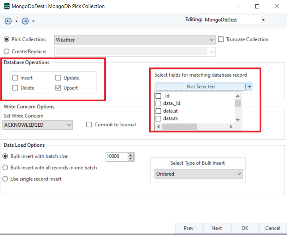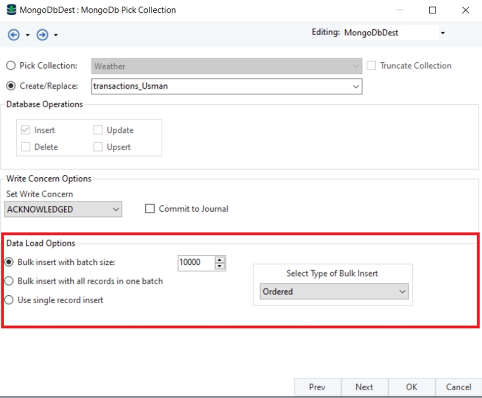 Write Concern Options – Selecting from these options lets the server provide an acknowledgment to the user based on how the process was carried out.