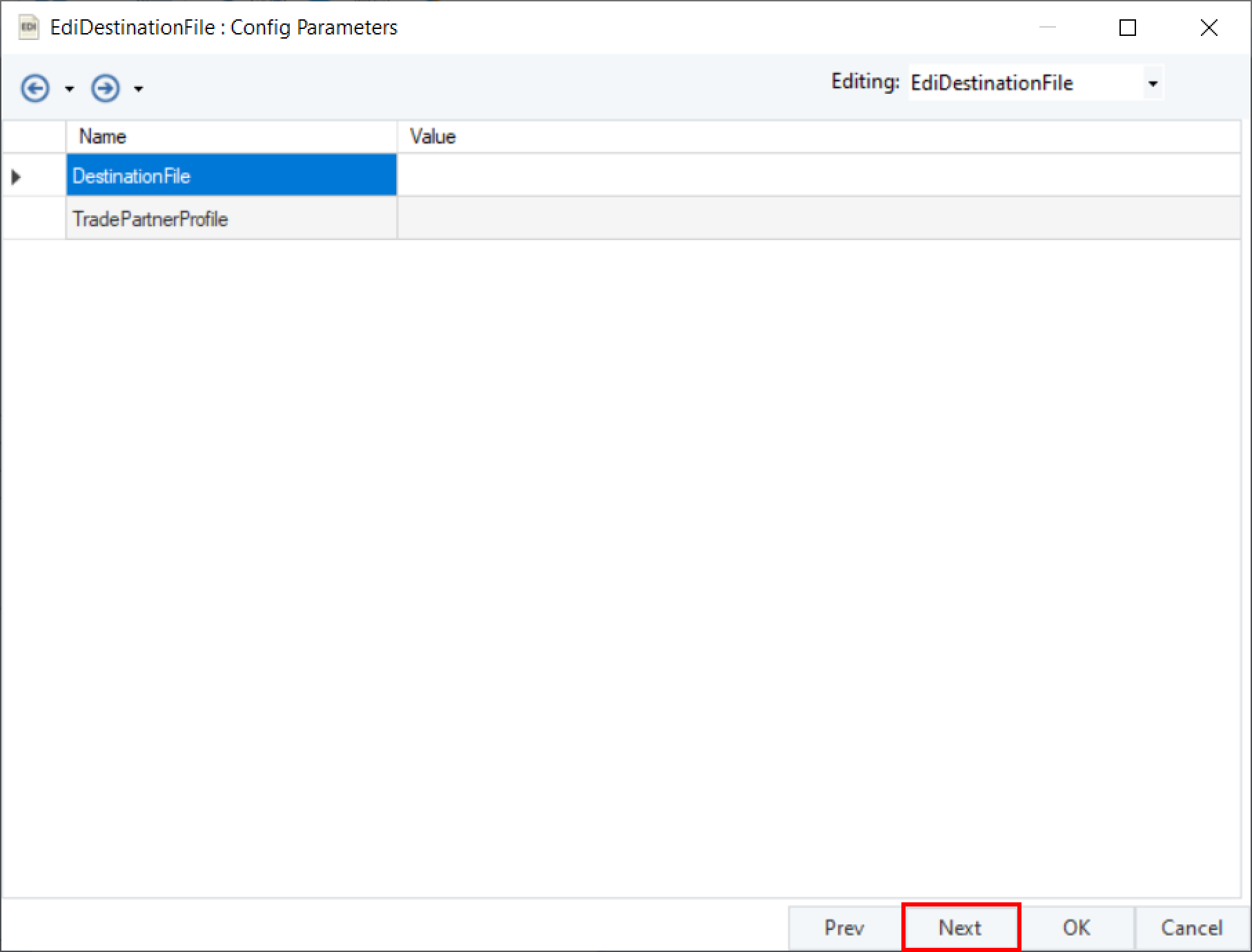 The Config Parameters screen will open, where we can configure and define parameters for the Destination File and Trade Partner Profile file.