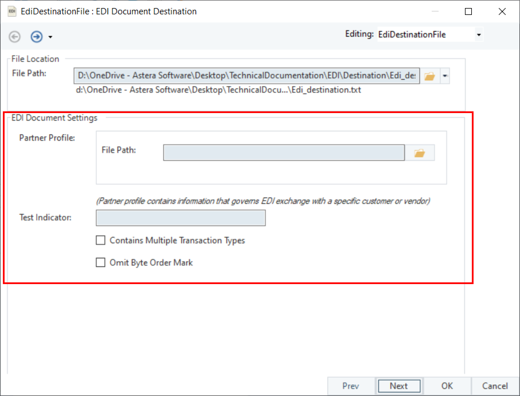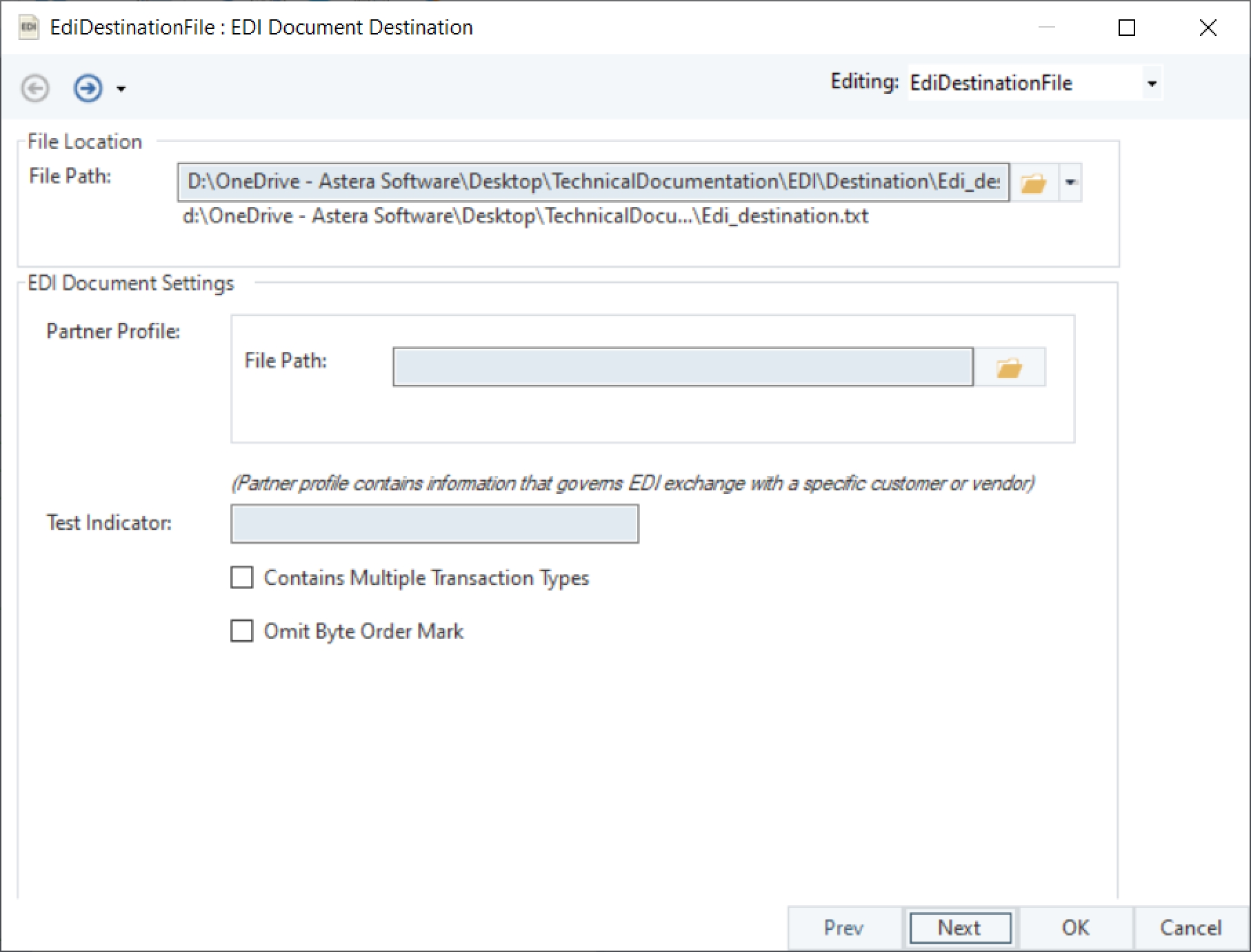 Omit Byte Order Mark – If selected, this indicates that the destination file must exclude the byte order mark from the beginning of the EDI message.