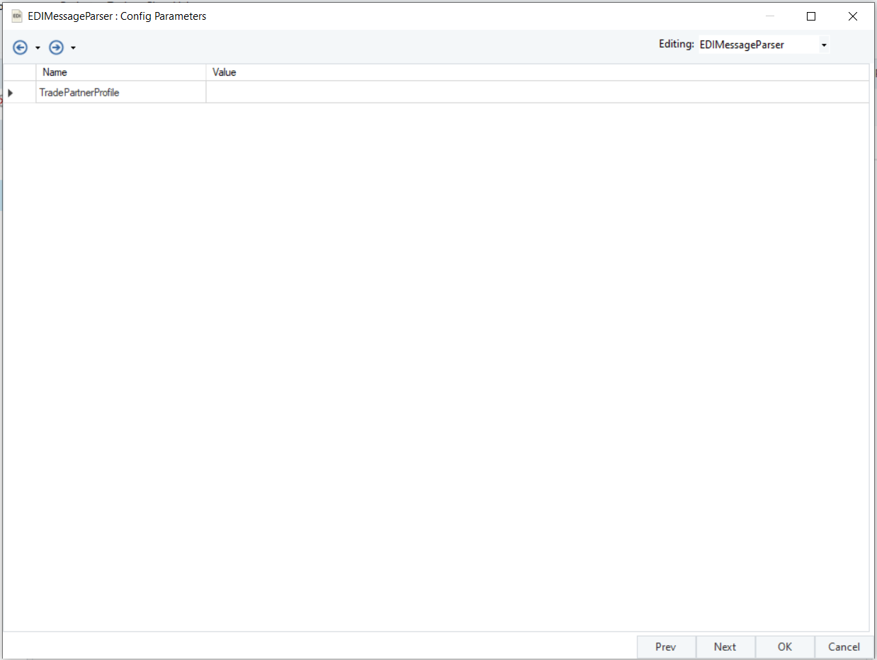 14. Once we are done configuring the object, we will click *Next*. We are now taken to a new window, *Config Parameters*. Here, we can further configure and define parameters for the *EDI Message Parser*.