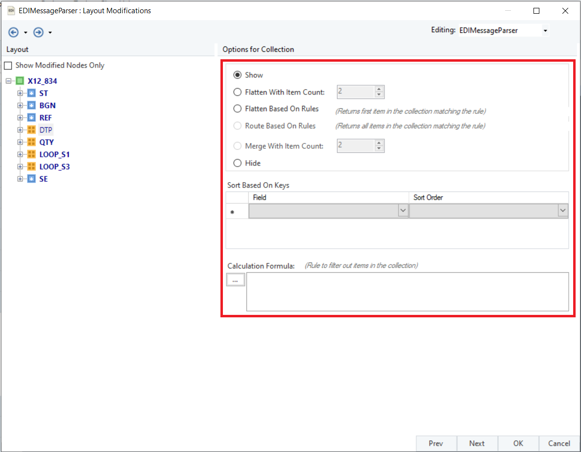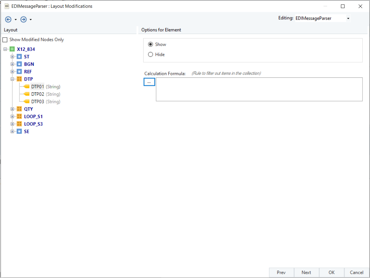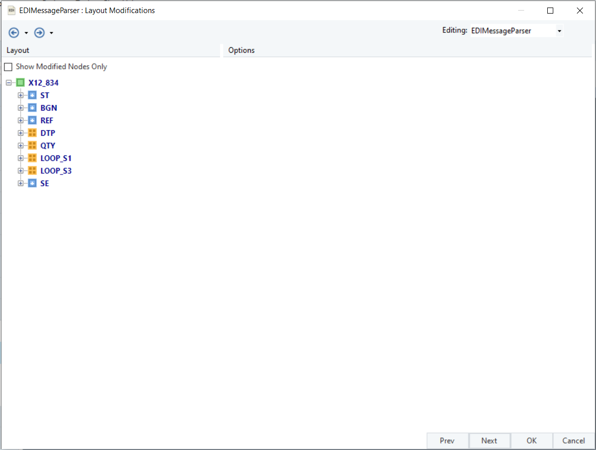 Once we are done configuring the EDI Message Parser, we click Next and are directed to the Layout Modifications window.
