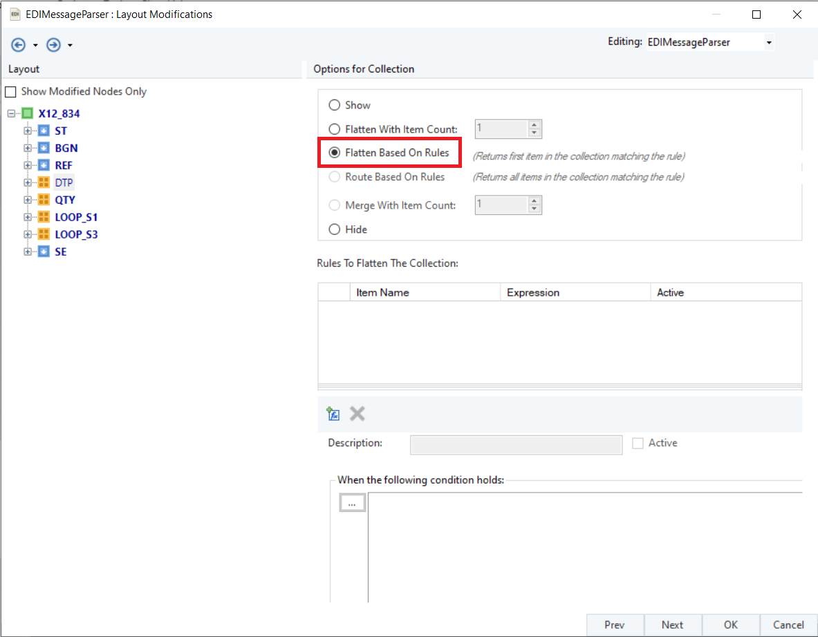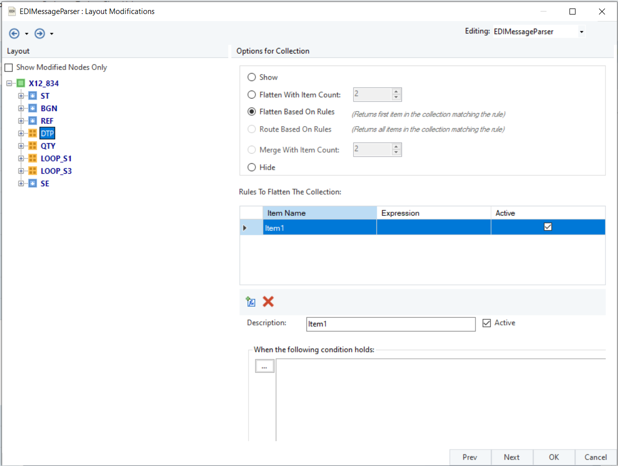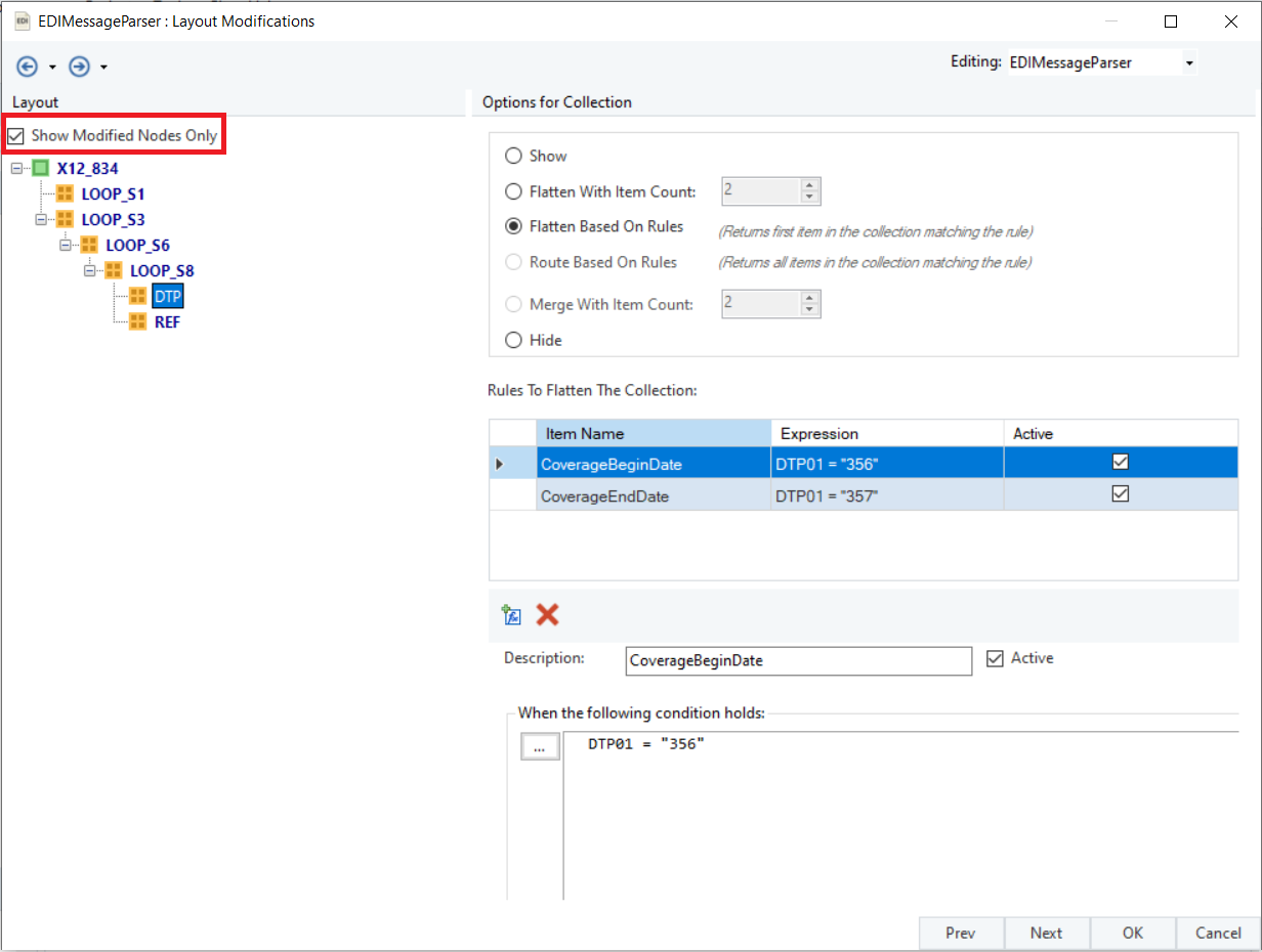 Once we are done configuring the EDI Message Parser, we click Next and are directed to the Layout Modifications window.