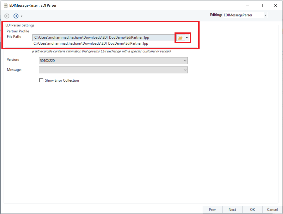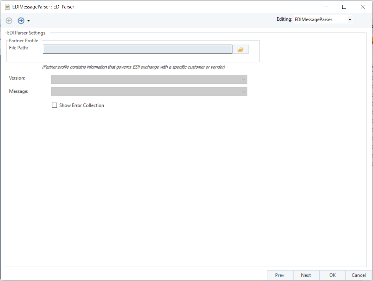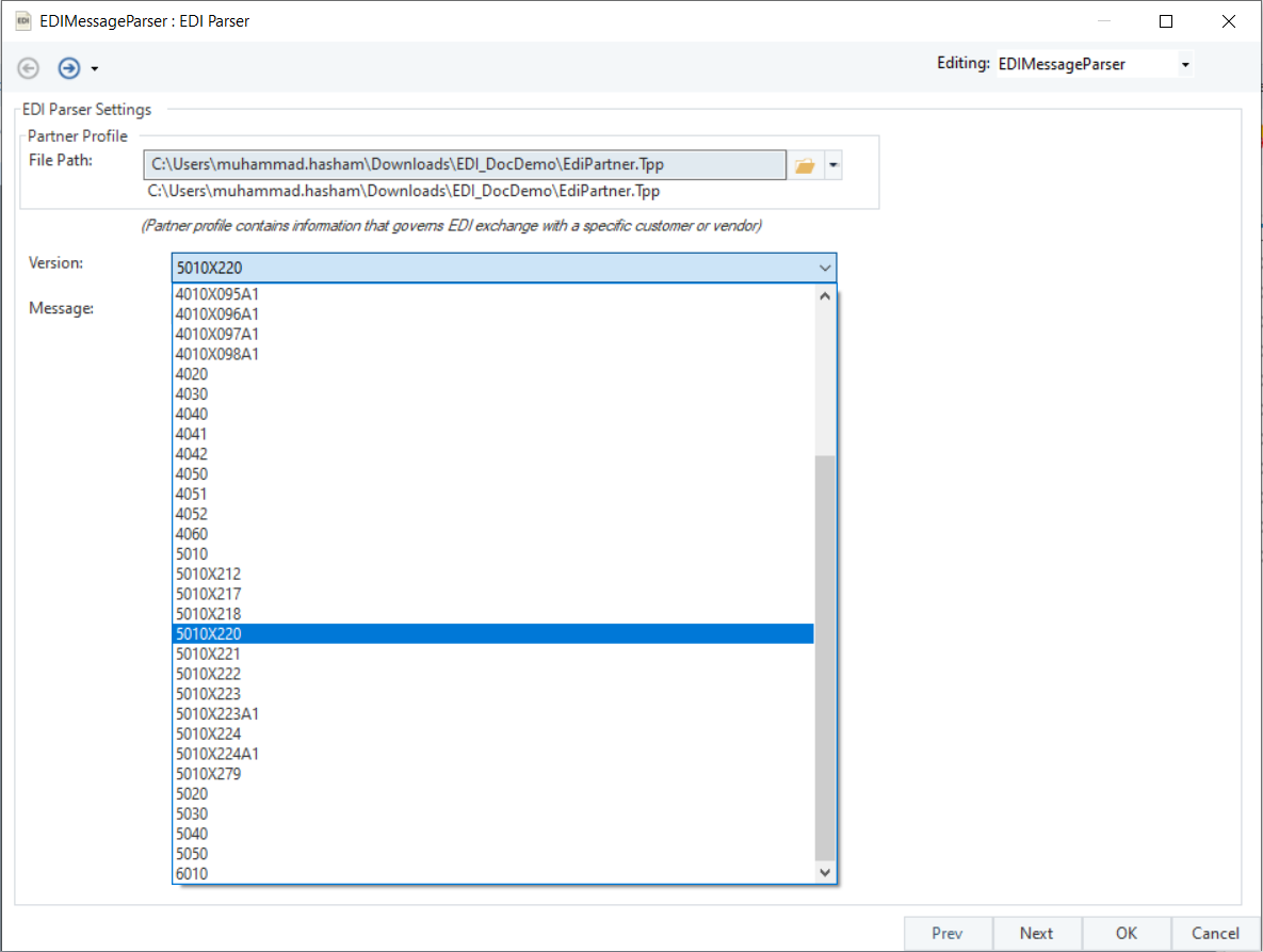 Once this is configured, the EDI Message Parser object automatically uses the dialect and version information from the Partner Profile file in order to parse the source file.