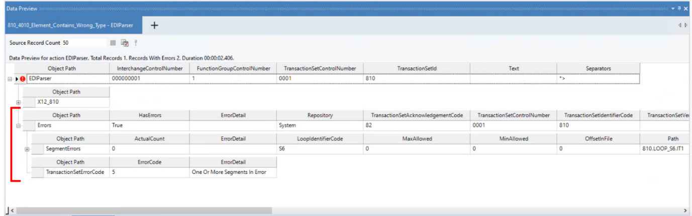 The Data Preview window will open. Upon expanding the EDI Message Parser, we will be able to see the parsed EDI file in hierarchical format.