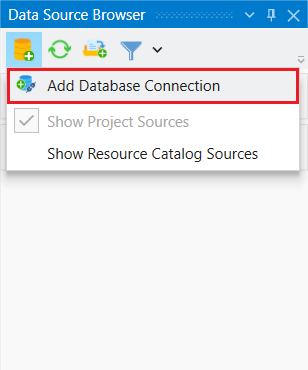 To connect the browser to a database source, go to the Add Data Source icon located at the top left corner of the pane and click on Add Database Connection.
