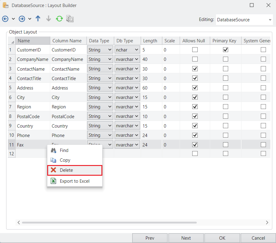 Note: Modifying the layout (adding or deleting fields) from the Layout Builder in Astera will not make any changes to the actual database table. The layout is only specific to Astera.