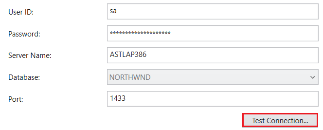 The next step is to fill in the required credentials. Also, to ensure that the connection is successfully made, select Test Connection.