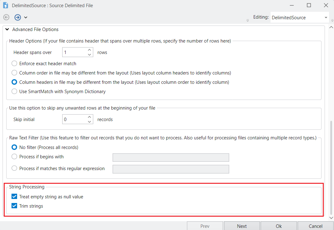 Configuring the Delimited File Source Object