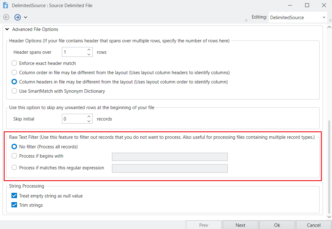 If there is a specific value which you want to filter out, you can check the Process if begins with option and give the value that you want Astera to read from the data, in the provided field.