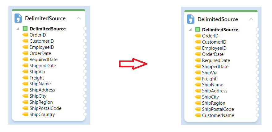 The Delimited File Source object has now been modified from its previous configuration. The new object has all the modifications that were made in the builder.