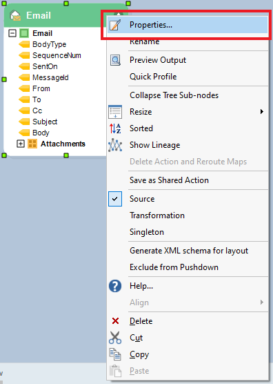 Right-click on the Email Source object’s header and select Preview Output from the context menu.