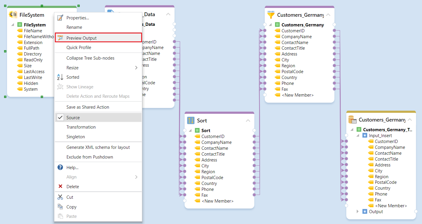 Now right-click on the File System Items Source object’s header and click Preview Output.