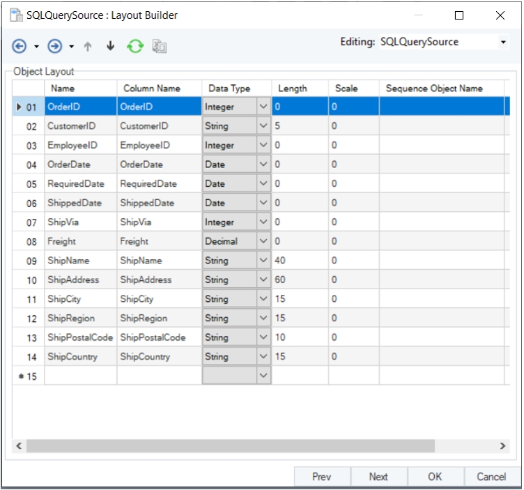 The next window is the Layout Builder. Here, you can modify the layout of the table that is being read from the database. However, these modifications will only persist within Astera and will not apply to the actual database table.