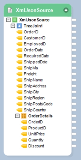 Note: In this case we are going to be using an XML/JSON file with Orders sample data in the parent node and Order Details sample data in the child node.