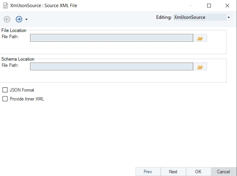 This is where you can configure properties for the XML/JSON File Source object.