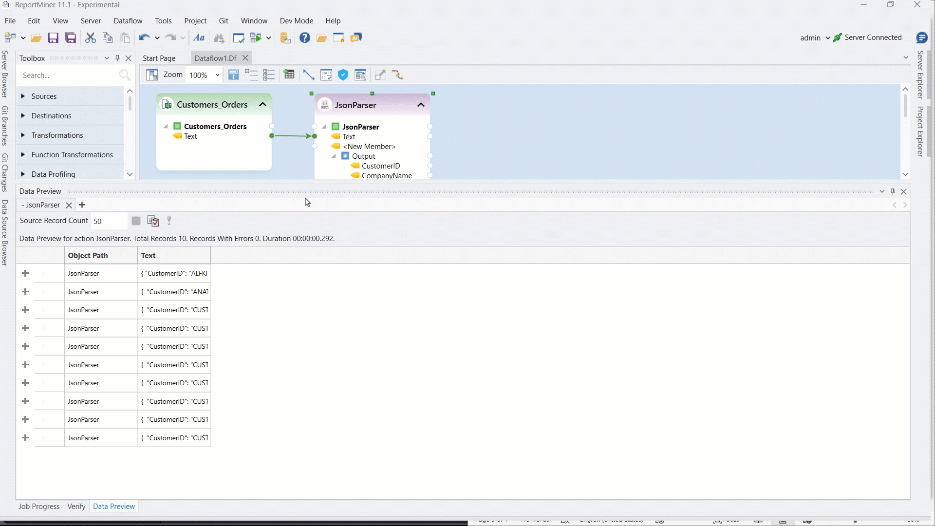 In this document, we will learn how to use the JSON Parser to parse an incoming text stream in Astera.