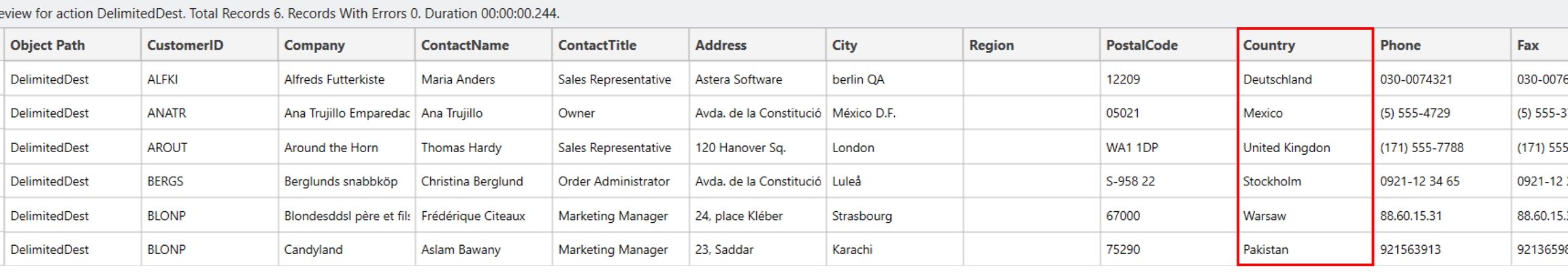 As you can see below, the values in the Country field have been semantically replaced from the file, using AI. Any missing values have just been assigned the source value as selected.