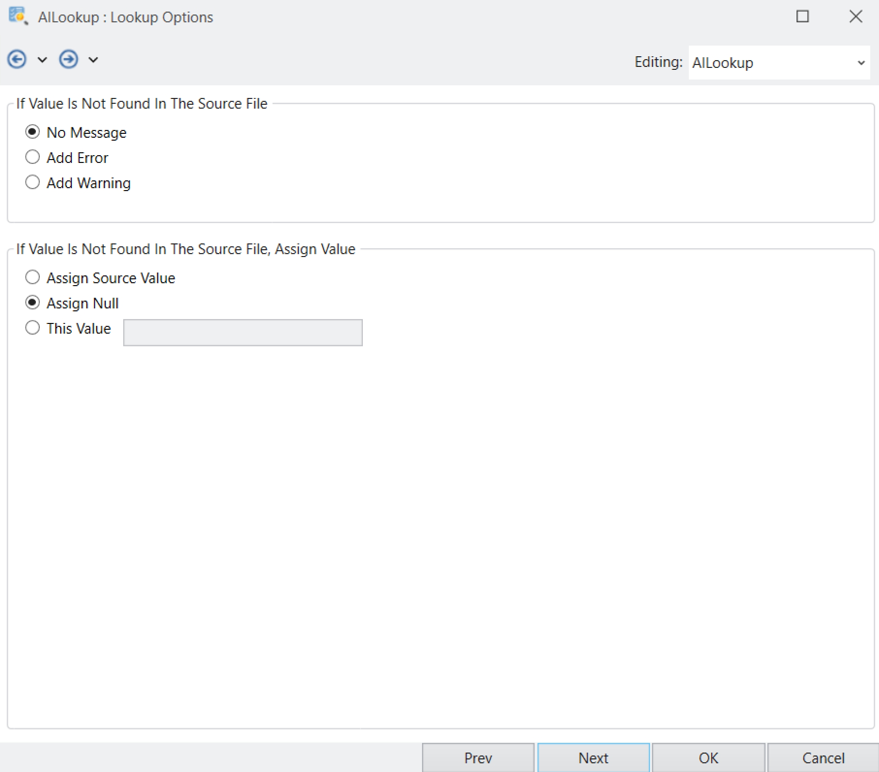 If Value Is Not Found In The Source File, Assign Value: If no lookup value is found against a source value, you can assign an output value of your choice.