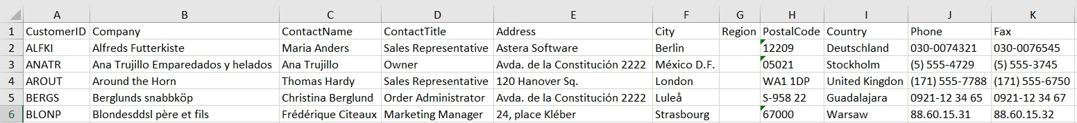 For our use case, we have a Customers dataset from the sales department as shown below: