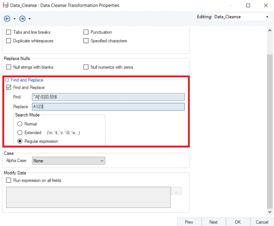 Regular Expressions – Allows you to find and replace a value based on a regular expression.