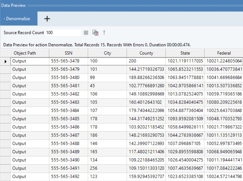 Map the fields and preview the output to view the denormalized data.