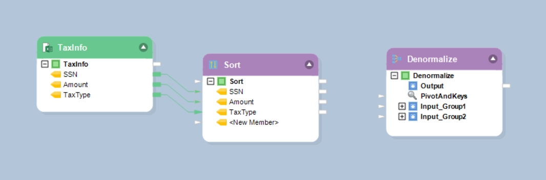 First, we will use the Sort object to sort our source data based on the key field, SSN in our case.