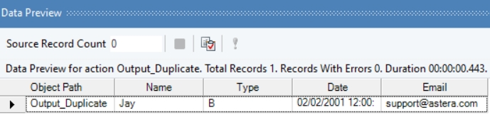 You can now write the Output_Distinct and Output_Duplicate nodes to two different destination objects. In this case we will write our output into a Delimited destination object.