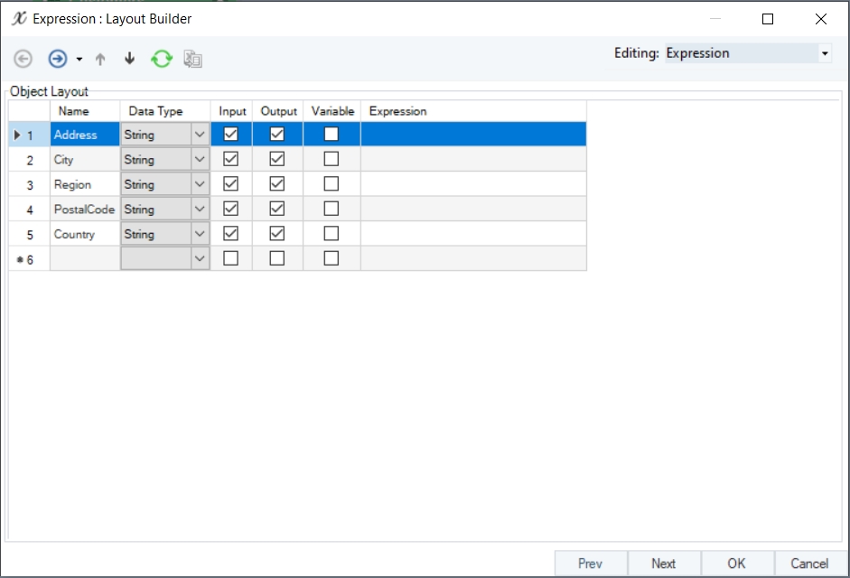 Map the fields to be concatenated from the source object to the Expression transformation object. In this example, we have mapped the Address, Region, City, Country and PostalCode fields.