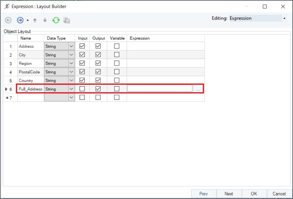 Since we want to write the address details from multiple fields into a single field, let’s create a new field named Full_Address, and specify the Data Type as String and check the Output option.