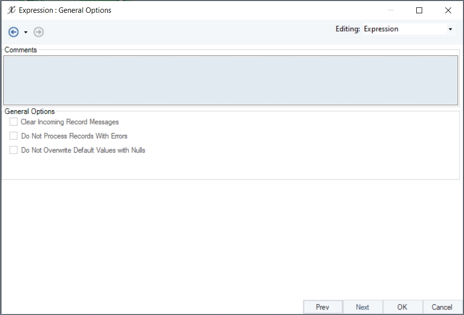 General Options screen: This window shares options common to most objects in the dataflow.