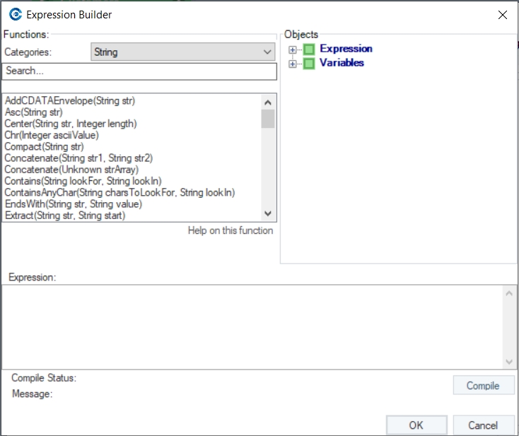 You will find the following options in the Expression Builder window: