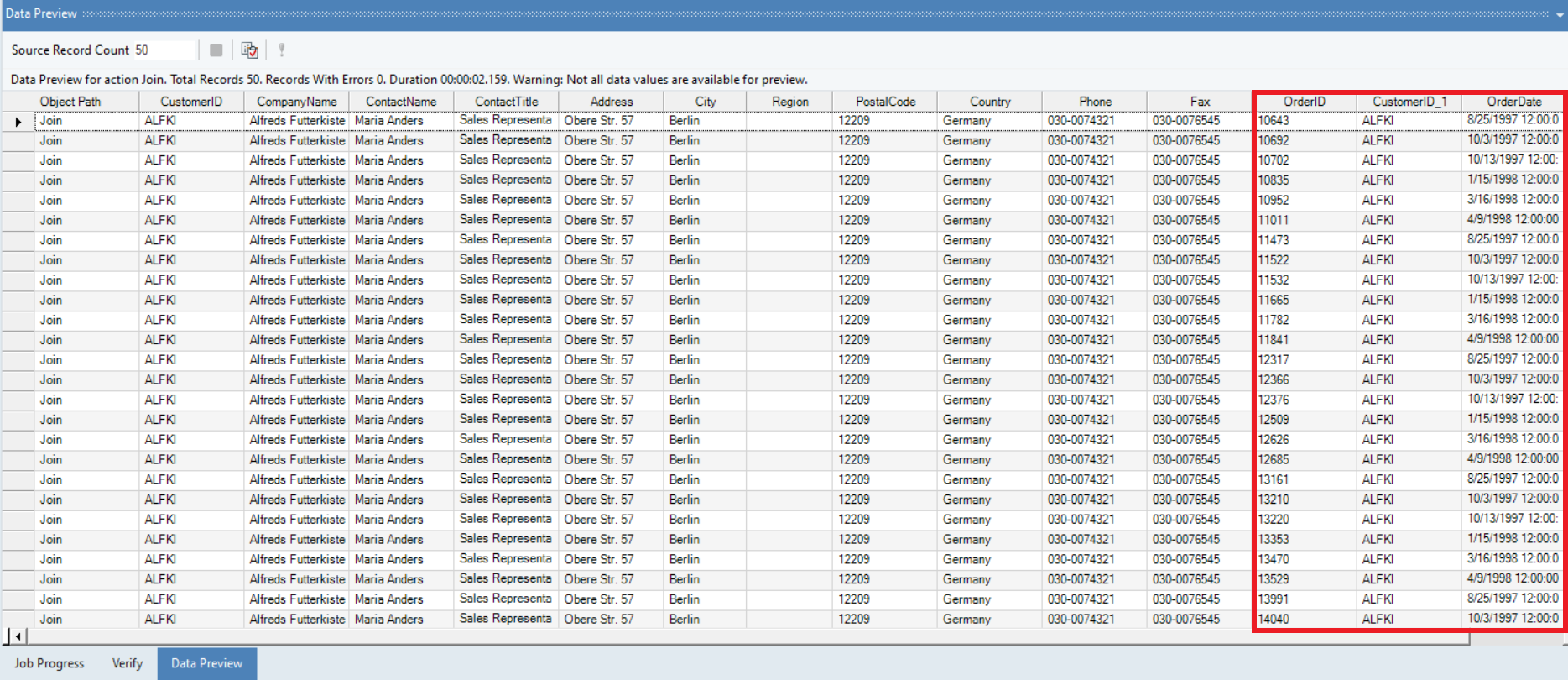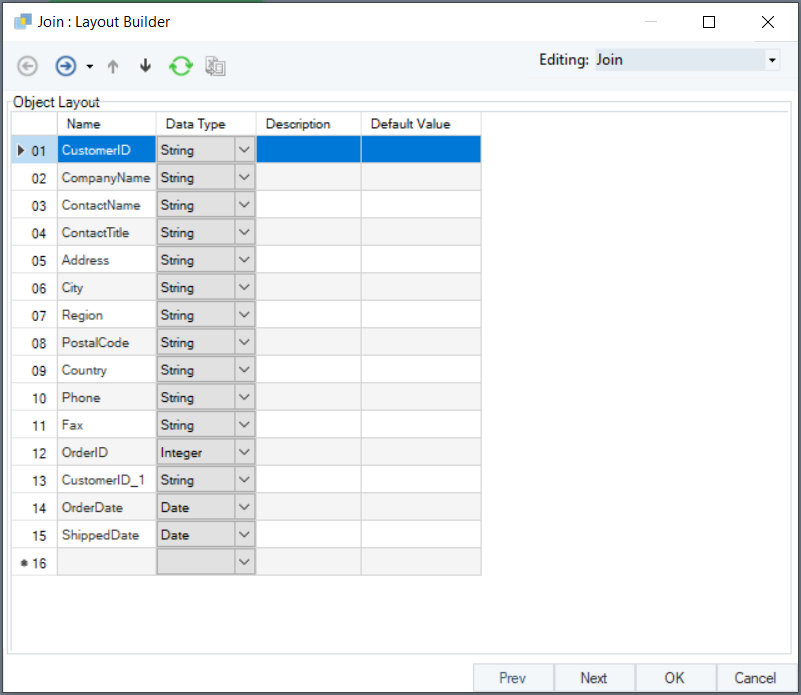 Note: To quickly add fields to the layout, drag-and-drop the bold node’s output port of the object whose layout you wish to replicate to the bold Join node of the Join object.