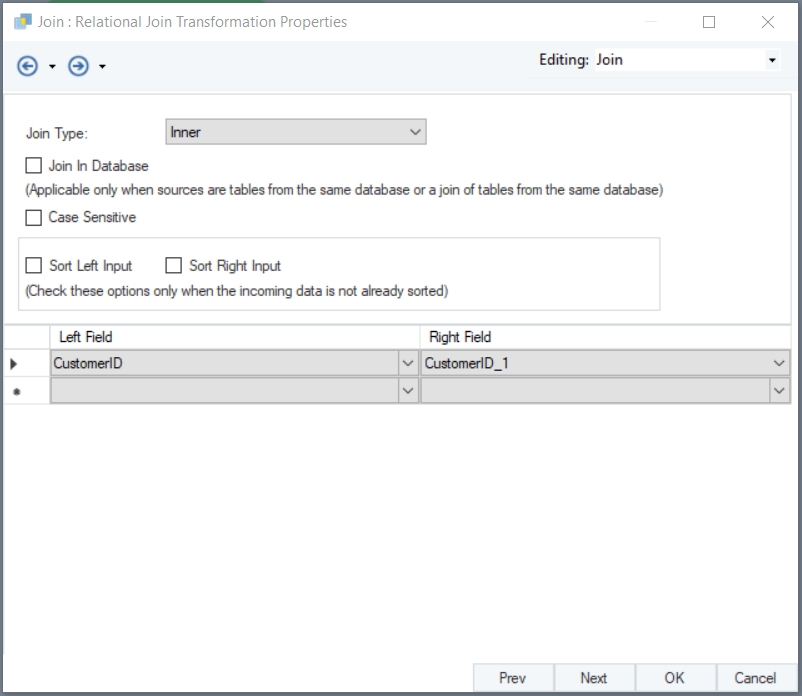 Sort (Left/Right) Input: Specify whether the left input, the right input, or both, need to be sorted.