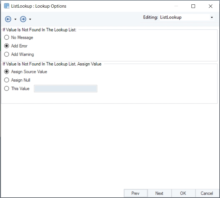 Add Warning – The List Lookup will generate a warning and return a null value for records from the source that do not have any matches in the lookup table