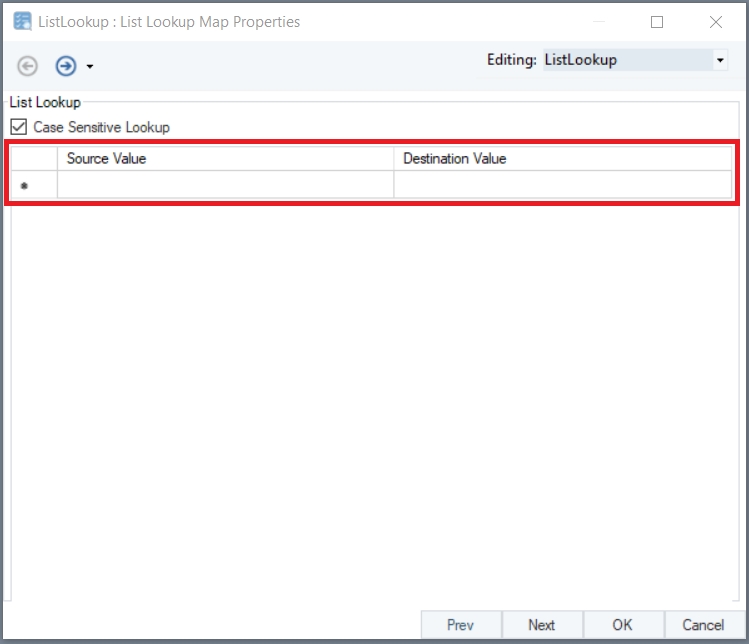 This is one way of specifying the lookup values. However, there can be a lot of source values and typing them manually can be a tedious task. There is a more efficient way of doing this in Centerprise.