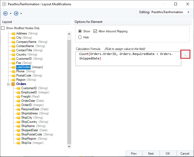 Select the LateOrders field. Here you can modify any field by applying expressions to it.