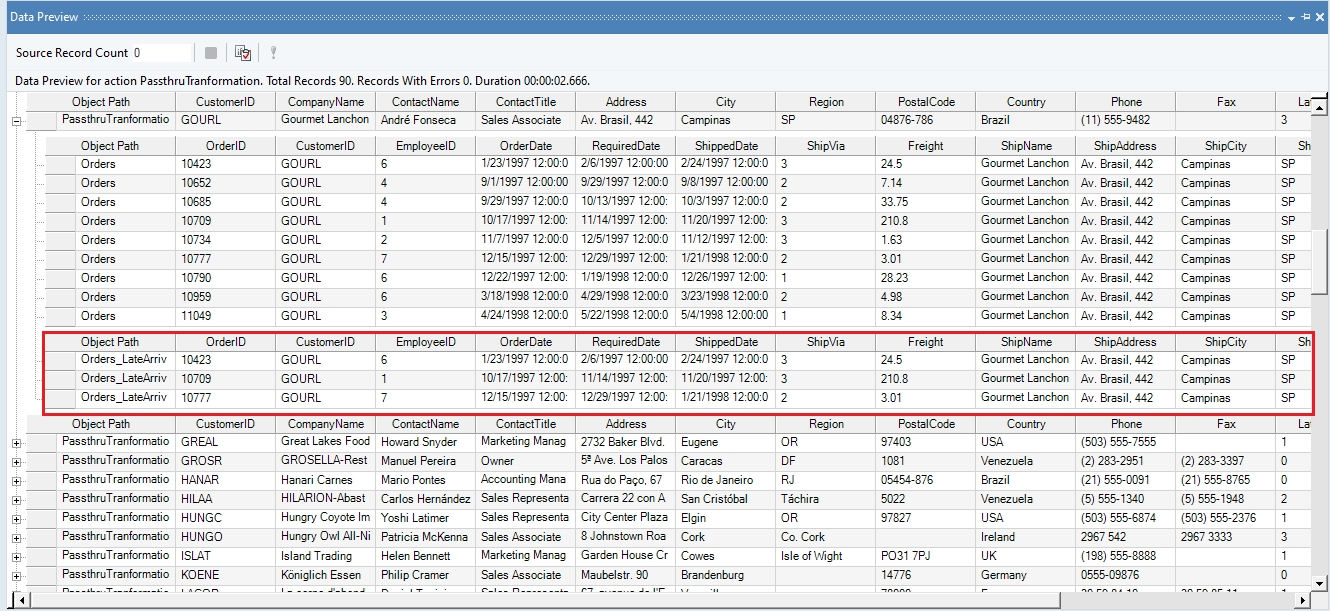 A Data Preview window will open. On expanding records, you will get corresponding order details and appended details of late arriving orders.