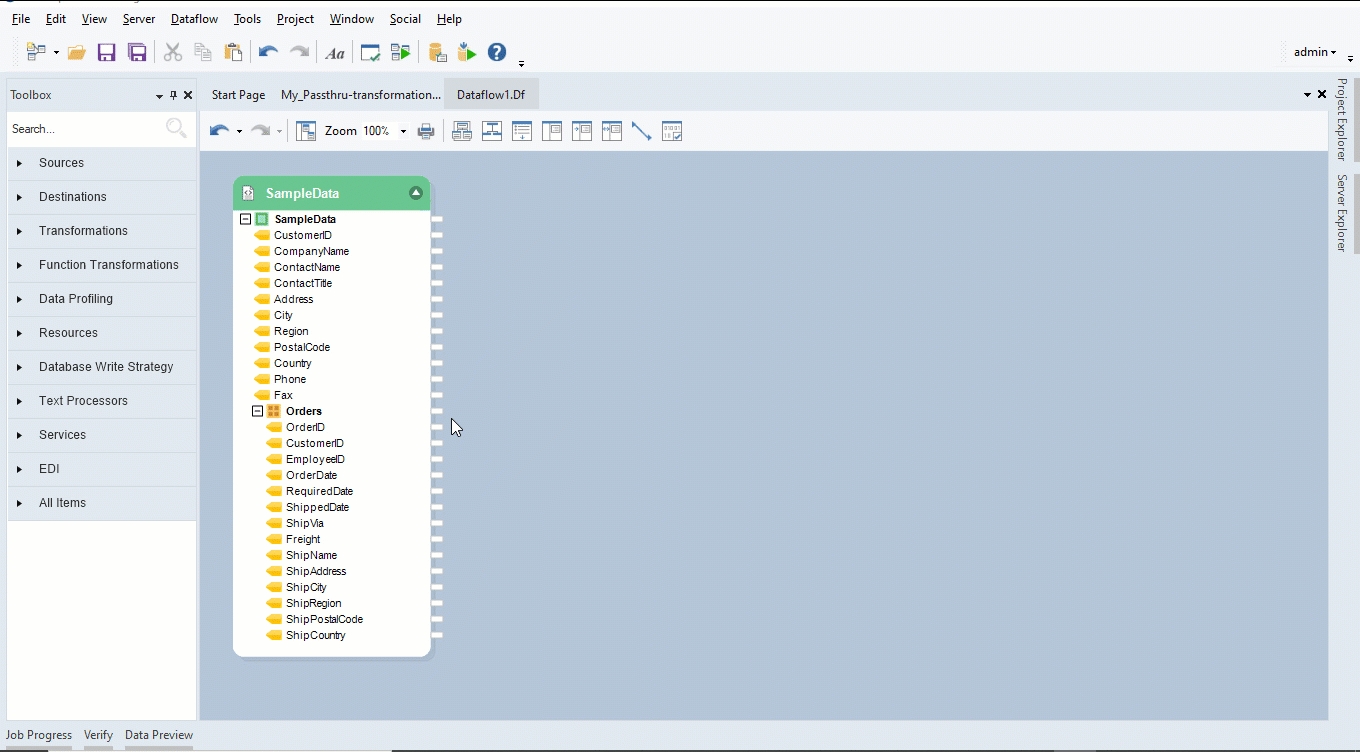 For this purpose, we will use the Passthru Transformation object.