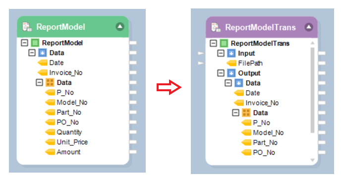 The Report Source object can be used as a transformation when you have multiple report models with the same layout, and process them in a dataflow or a workflow.