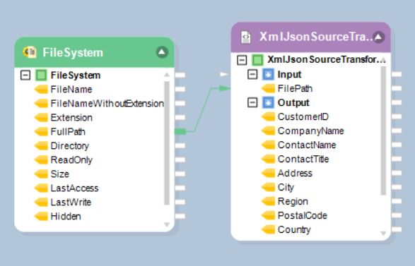 Map the FullPath field from FileSystem to XmlJsonSource object’s Input node (FilePath).