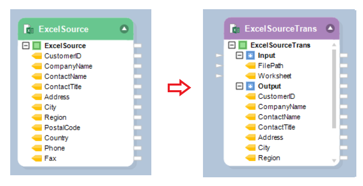 The transformed ExcelSource object will now have two nodes: