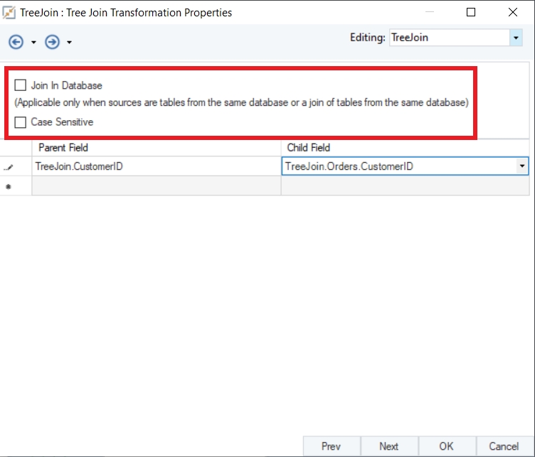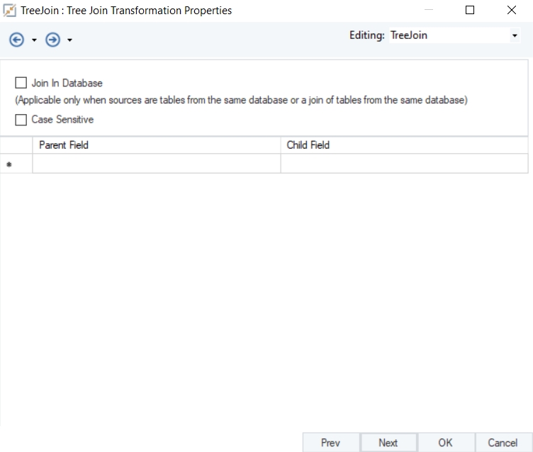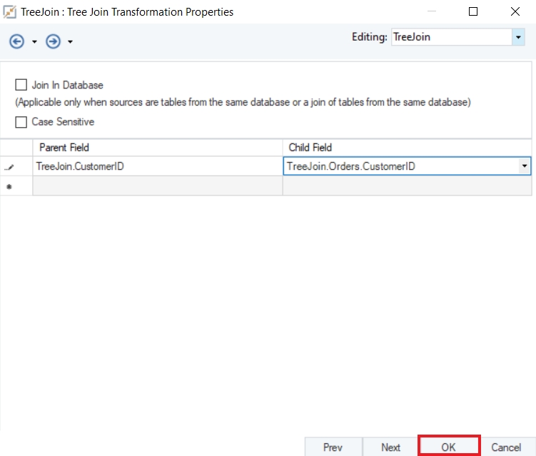 8. In the TreeJoin Transformation Properties window, we must specify the Join Key.